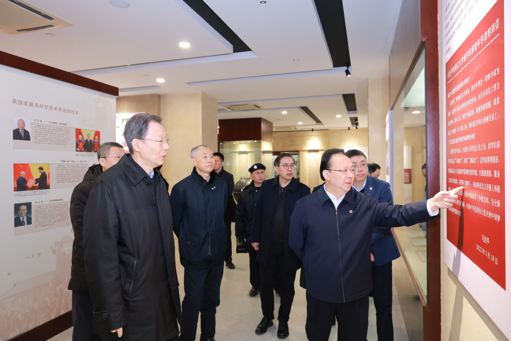李学勇在谭铁牛的陪同下,走进南京大学校史博物馆,了解南京大学校训校徽、校史沿革、办学理念以及不同时期的办学成就。谭铁牛如数家珍,向李学勇详细介绍了南京大学扎根中国大地,在人才培养、基础研究、科研创新及成果转化等方面取得的突出成就。李学勇充分肯定了南大在科学研究、人才培养和文化传承等方面做出的贡献。他指出,南京大学“规模不大水平高”,南大的老院士、老教授、老科技工作者们拥有深厚的文化积淀,必定能为国家做出更大贡献。