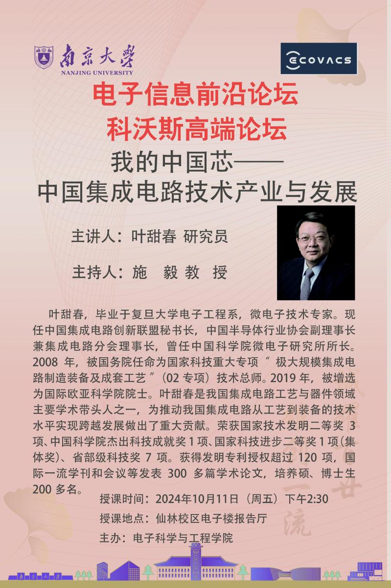 我的中国芯——中国集成电路技术产业与发展(2024年10月11日下午2:30)